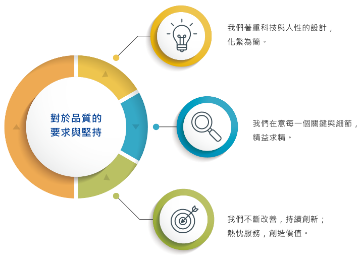 - 我們對於品質的要求,從前端設計到售後服務,一貫的信念都來自於對於品質的執著。